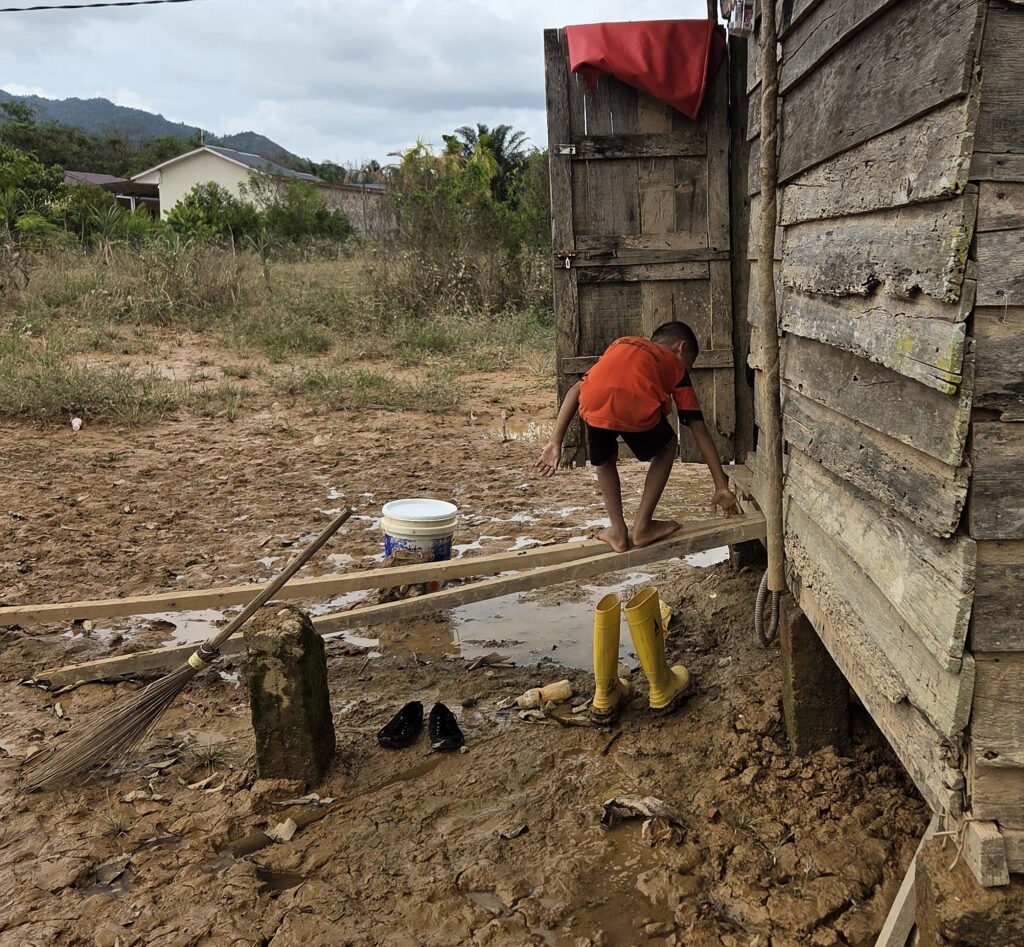«Il livello dell’acqua continuava a crescere e siamo saliti sul tetto della nostra casa. Siamo rimasti lì per due giorni e una notte, senza cibo e bevendo la pioggia che continuava a cadere forte. Andy aveva tanta paura ma è stato bravo, urlava al cielo “per favore Dio aiutaci”. Anche se ha una disabilità, Andy sa che Dio esiste», racconta Nurnima.